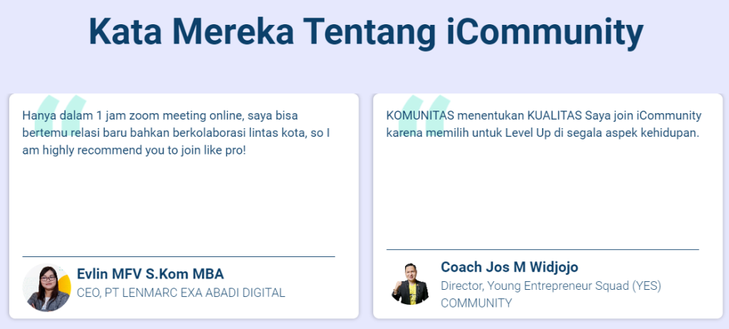 - Founder dan CEO dari iCommunity.id – Platform komunitas pebisnis dan professional